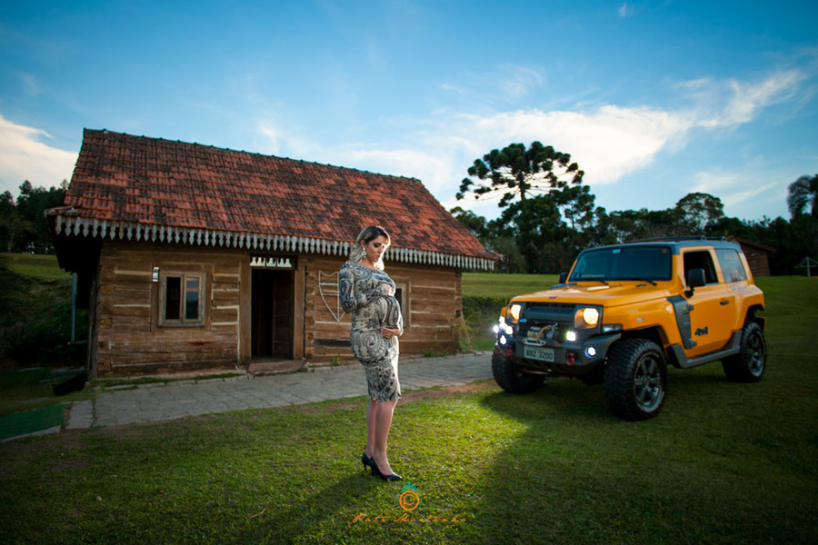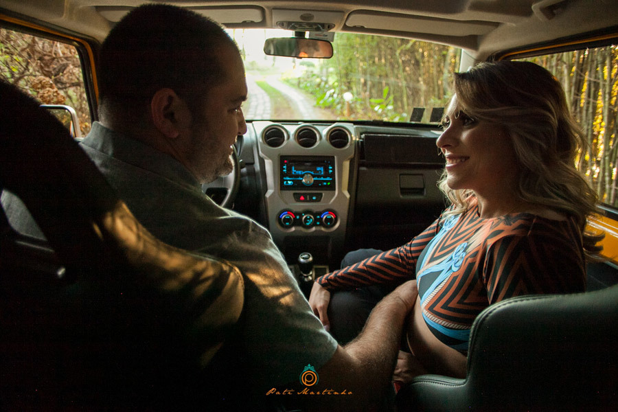 Quando a Camila me falou que estava grávida, antes mesmo de contar para os seus pais, eu já pensei : "precisamos fazer as fotos com o Jipe". Cabe aqui dizer que nessa hora me vi muito pensativa em como agradar os dois, porque a Camila é uma Lady, muito delicada, não combina nem um pouco com carro, motores e afins. Para resolver esse impasse, propus 2 ensaios e deu muito certo.